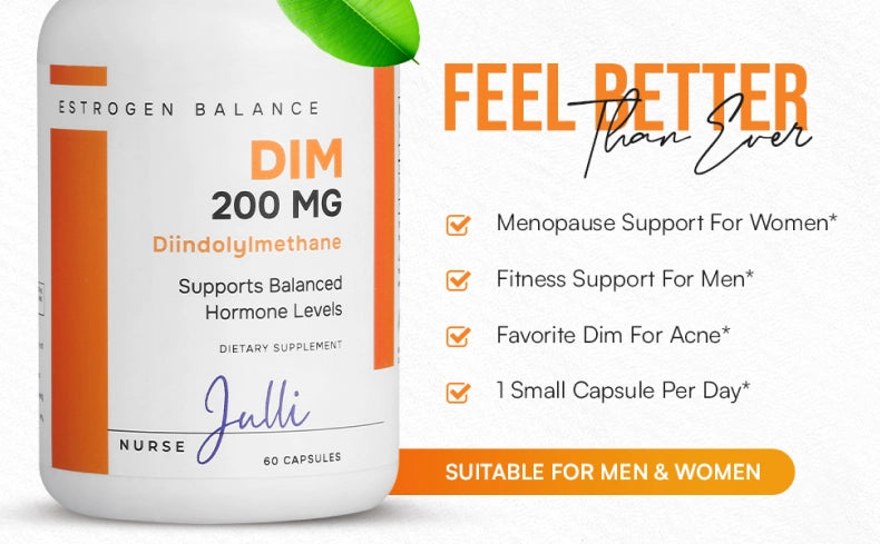 - OPTIMAL BALANCE AND METABOLISM - With 200 mg DIM-Complex per capsule, Nurse Julli helps maintain healthy cortisol levels, contributing to increased metabolism and hormonal balance, which aids in handling menopause symptoms, mood swings, and more!